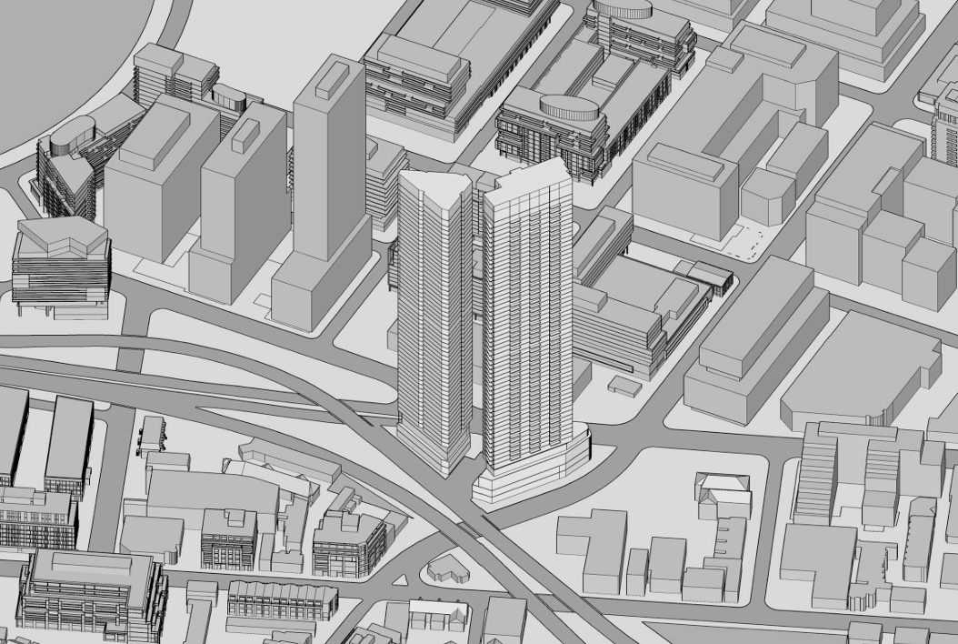 Two super-tall towers proposed for a triangular Corktown site with unprecedented density (FSI 37-38). The proposal includes 1,284 units, minimal parking, and relies on a future Ontario Line station. The community consultation had no presentation and no way to submit feedback.
